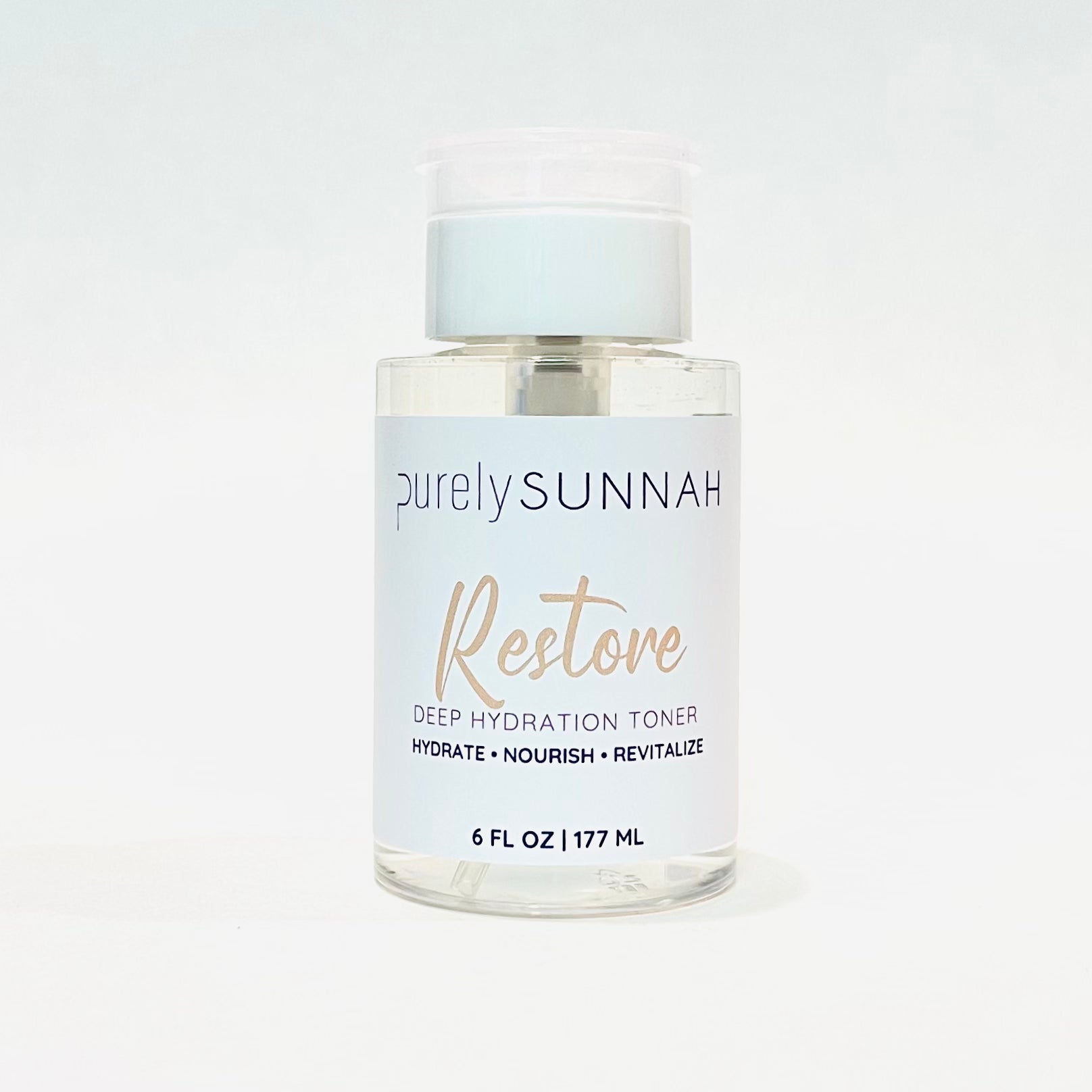Our Restore Deep Hydration Toner combines Hyaluronic Acid & Alpha Hydroxy Acid, which when combined boost hydration while softening & improving skin tone & texture. AHAs protect skin against free radicals & help promote skin cell turnover. Hyaluronic acid imparts hydration deep into skin, while Black Willow Bark and Aloe Vera extract heal and rejuvenate the skin from within.